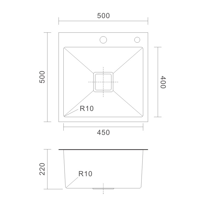จำนวนหลุม: | 2 | ขนาด: | 500x500x220 มม |